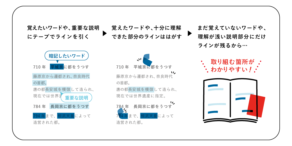 覚えたワードや理解できた部分のラインをはがしていくことで、