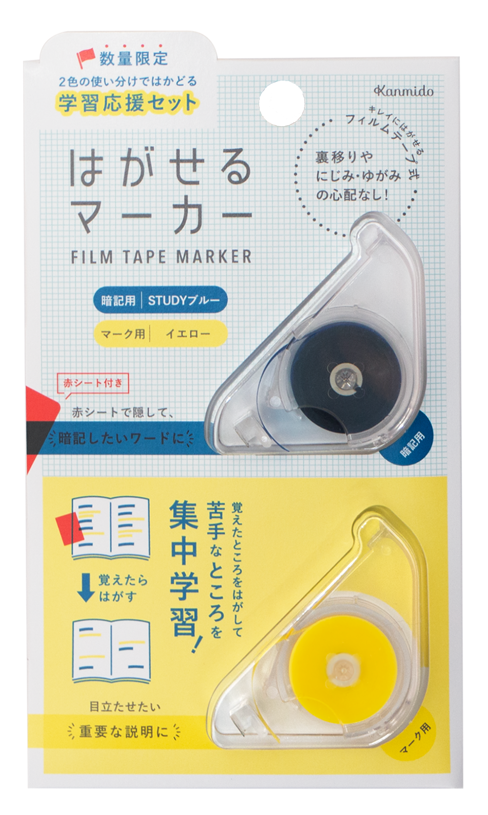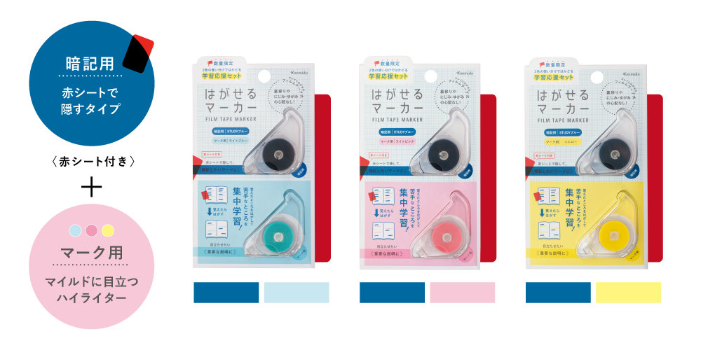 「学習応援セット」は、1番人気の暗記学習用カラー[STUDYブルー]とあわせ使いがおすすめの+1カラーをセットにした2色パックです。