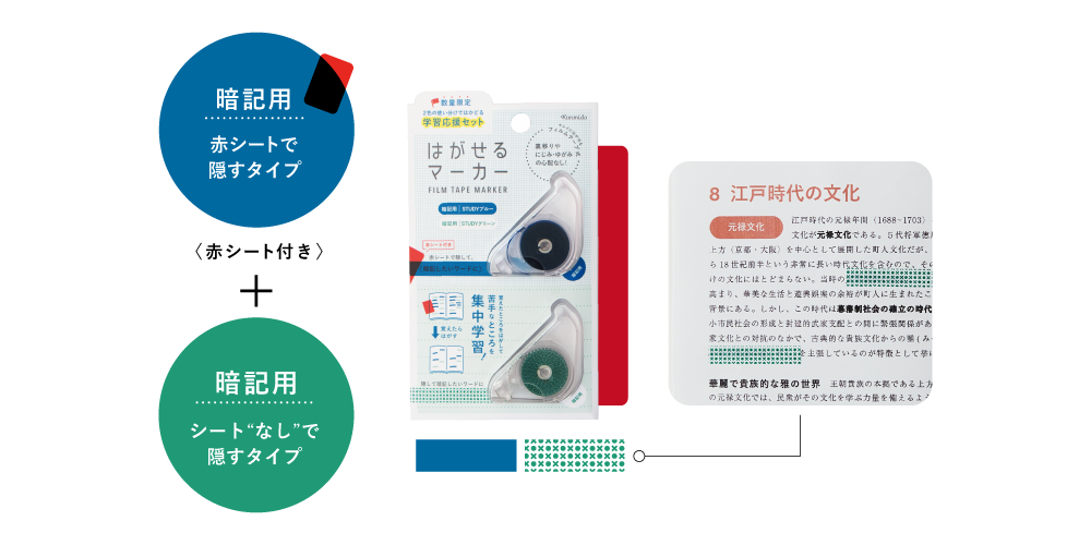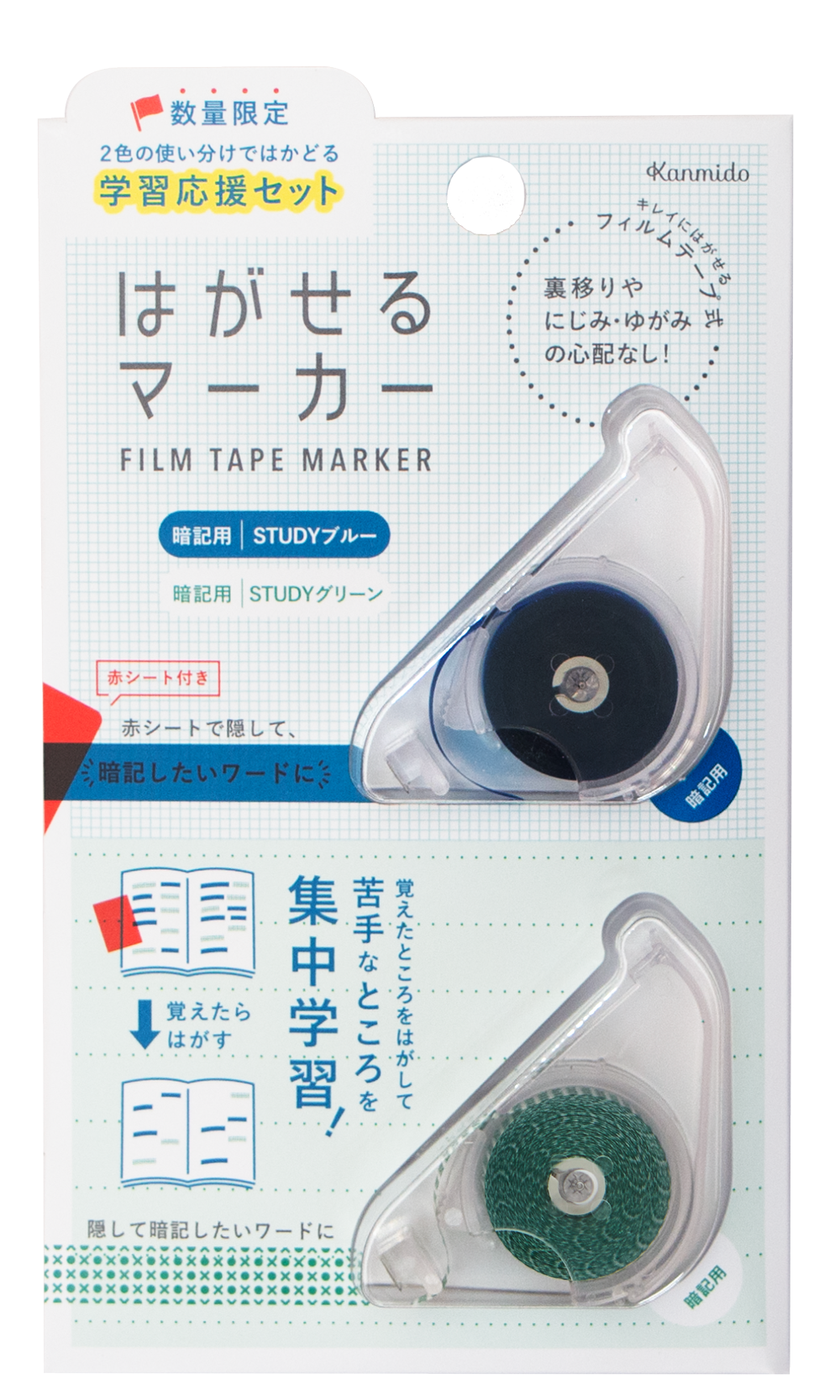 「学習応援セット」は、1番人気の暗記学習用カラー[STUDYブルー]とあわせ使いがおすすめの+1カラーをセットにした2色パックです。