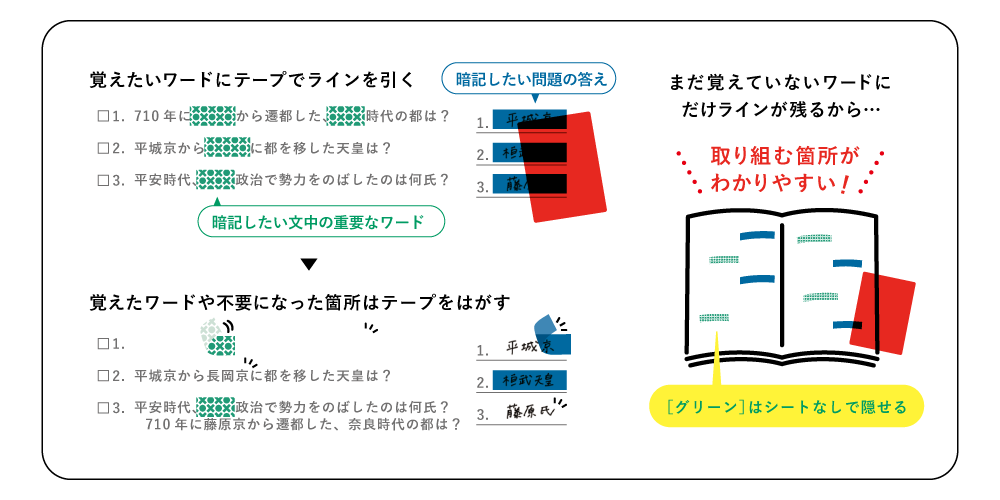 [問題の答え]と[重要な文中のワード]どちらも暗記学習しやすい2色セット