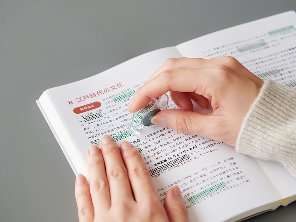 [暗記用グリーン]は、隠蔽性の高い白フィルム+カモフラージュ柄なので、